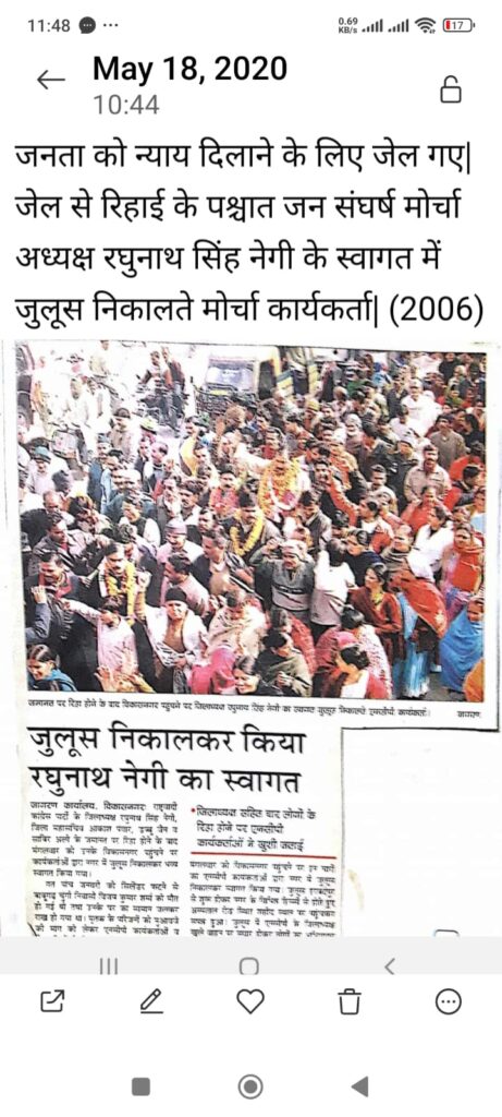 रघुनाथ सिंह नेगी के नेतृत्व में जनता सड़कों पर उतर आई।