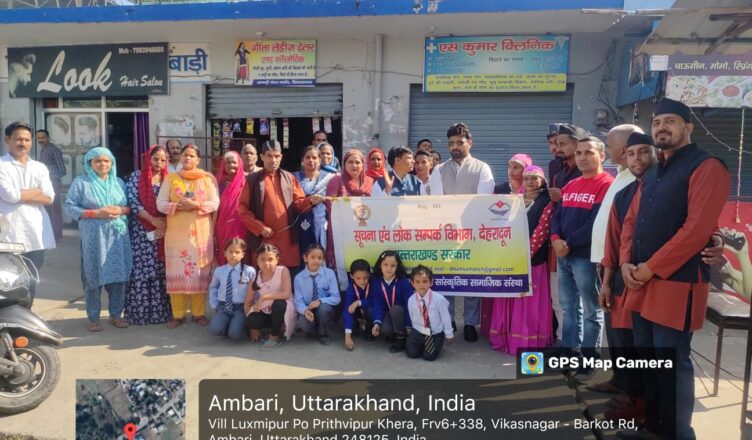 विकासनगर ( उत्तराखंड बोल रहा है हर खबर सच के संग)। राज्य सरकार की जनकल्याणकारी योजनाओं को घर-घर तक पहुंचाने के उद्देश्य से सूचना एवं लोक संपर्क विभाग द्वारा चलाए जा रहे जनजागरूकता अभियान के तहत धूमसू जौनसारी जनजाति सांस्कृतिक एवं सामाजिक संस्था ने अध्यक्ष शांति वर्मा ‘तन्हा’ के नेतृत्व में विकासखंड विकासनगर के विभिन्न ग्रामों — डुमेट, अंबाड़ी, मेहुवाला खालसा, डंडा जंगल, पृथ्वीपुर जंगल, बुलाकीवाला, डाकपत्थर, भीमावाला, नवाबगढ़, रसूलपुर आदि में एक श्रृंखलाबद्ध कार्यक्रम आयोजित किए।