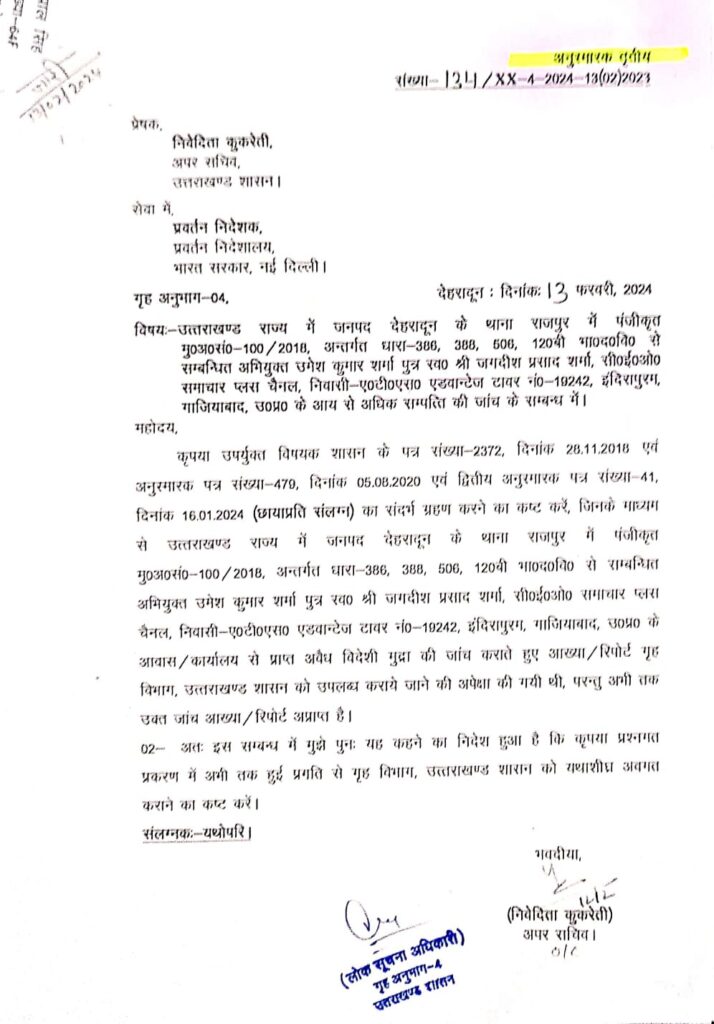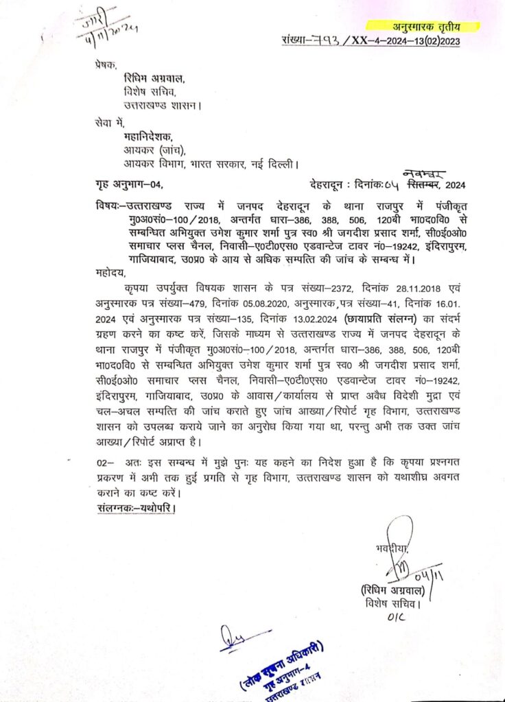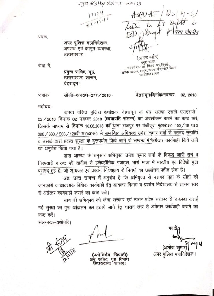 नेगी ने बताया कि नवंबर 2018 में इंदिरापुरम, गाजियाबाद स्थित उमेश शर्मा के आवास से गिरफ्तारी के दौरान विदेशी मुद्रा, विदेशी शराब, लाखों की नकदी, इलेक्ट्रॉनिक गैजेट्स और अन्य कीमती सामान बरामद हुए थे। इसकी रिपोर्ट तत्कालीन एसएसपी देहरादून ने शासन को भेजी थी, जिसके बाद गृह विभाग ने ईडी और आयकर विभाग को विस्तृत जांच के आदेश दिए थे। लेकिन वर्षों बाद भी दोनों विभाग खामोश हैं।