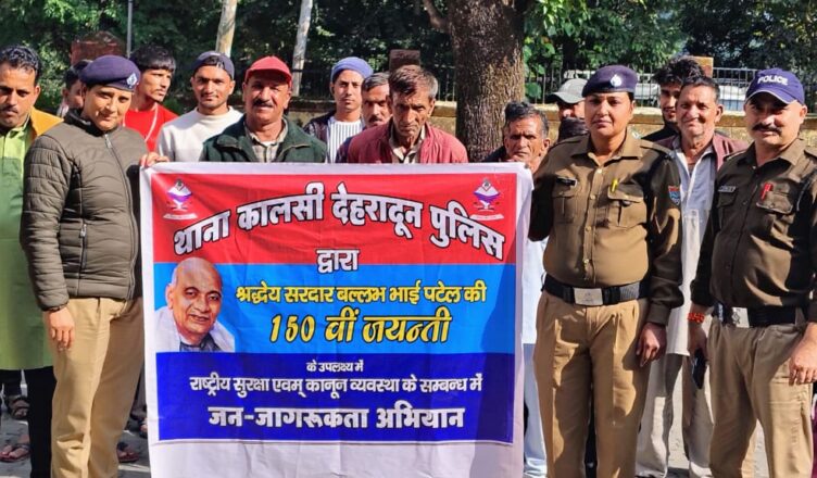 “लौह पुरुष” सरदार वल्लभभाई पटेल की 150वीं जयंती के अवसर पर गुरुवार को थाना कालसी पुलिस द्वारा हरिपुर कालसी क्षेत्र में जनजागरूकता कार्यक्रम आयोजित किया गया। यह कार्यक्रम पुलिस मुख्यालय एवं वरिष्ठ पुलिस अधीक्षक देहरादून के निर्देशों के तहत “रन फॉर यूनिटी” अभियान के अंतर्गत आयोजित हुआ।