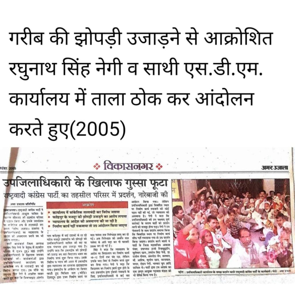 वर्ष 2005 — वो साल जब अन्याय के खिलाफ आवाज़ बनकर उभरे थे जनसंघर्ष मोर्चा अध्यक्ष रघुनाथ सिंह नेगी। एक गरीब मजदूर की झोपड़ी को ग्राम सभा द्वारा मा. न्यायालय के स्थगन आदेश के बावजूद उजाड़ दिया गया। पीड़ित व्यक्ति कई बार न्याय की आस में तहसील के चक्कर काटता रहा, लेकिन उसकी पुकार किसी ने नहीं सुनी।