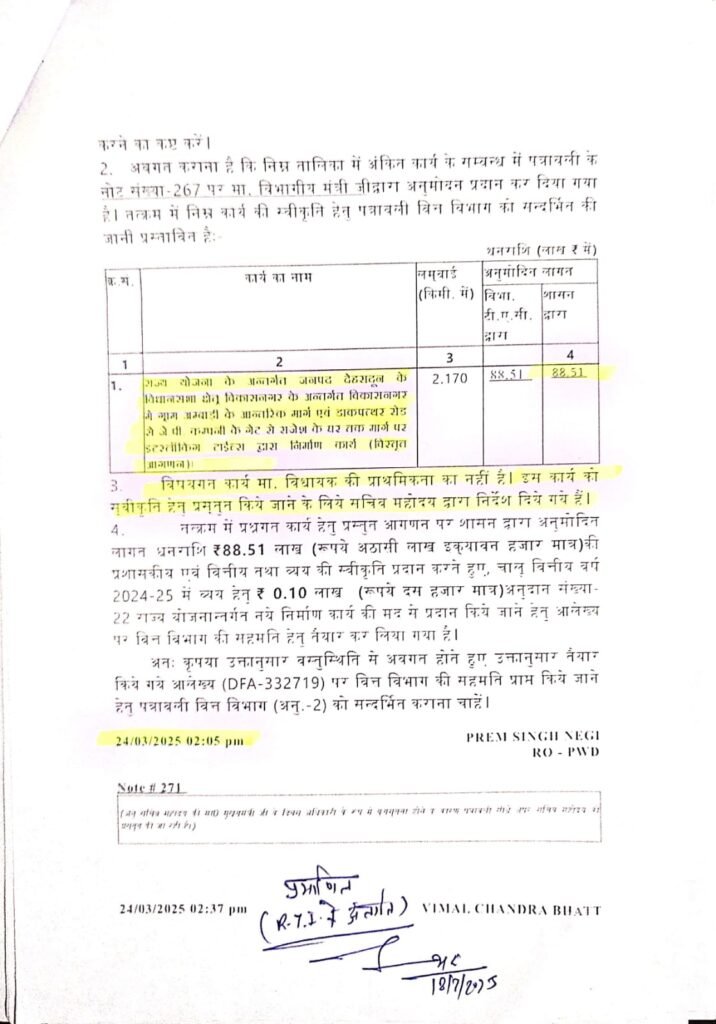 उन्होंने यह भी बताया कि वर्ष 2023 में शासन द्वारा प्रमुख अभियंता के माध्यम से अधिशासी अभियंता से अनुसूचित जाति/जनजाति से संबंधित आंकड़े मांगे गए थे, जिन्हें उप जिलाधिकारी के माध्यम से भेजा गया। आवश्यक प्रक्रिया पूरी होने के बाद ही सड़क को स्वीकृति मिली।