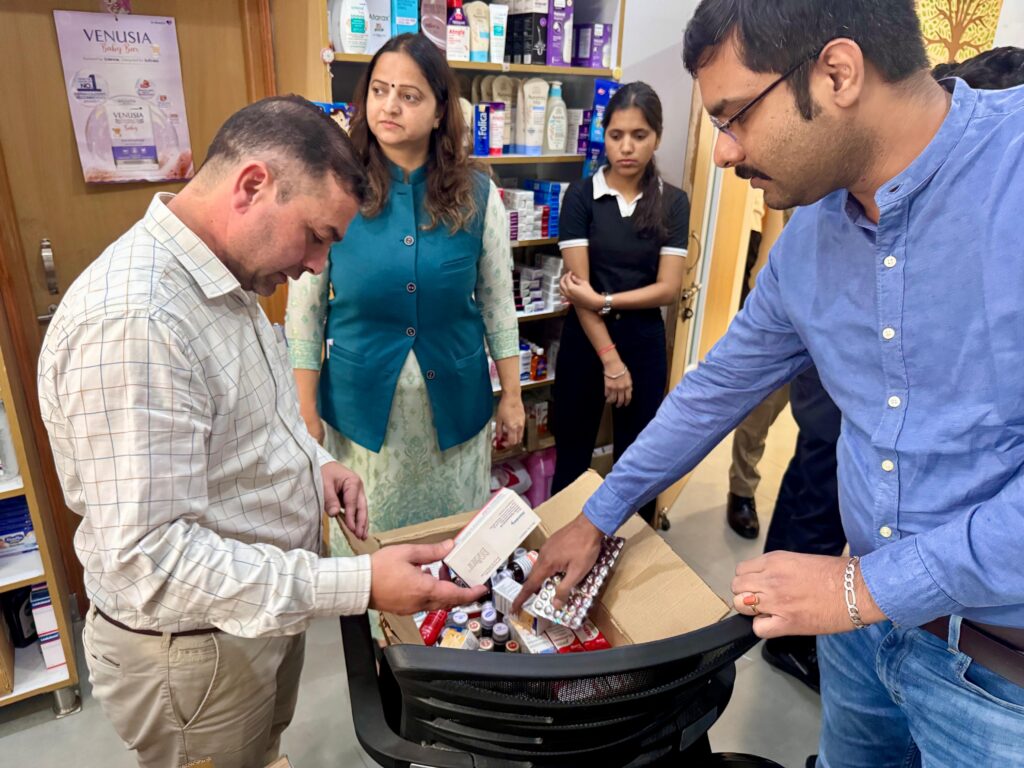 श्रीराम मेडिकोज, न्यू रोड: भारी गंदगी और अनियमितताएं मिलीं। सीसीटीवी बंद मिले। स्टोर के क्रय-विक्रय पर रोक लगाई गई और 01 पेटी कफ सिरप सील की गई।