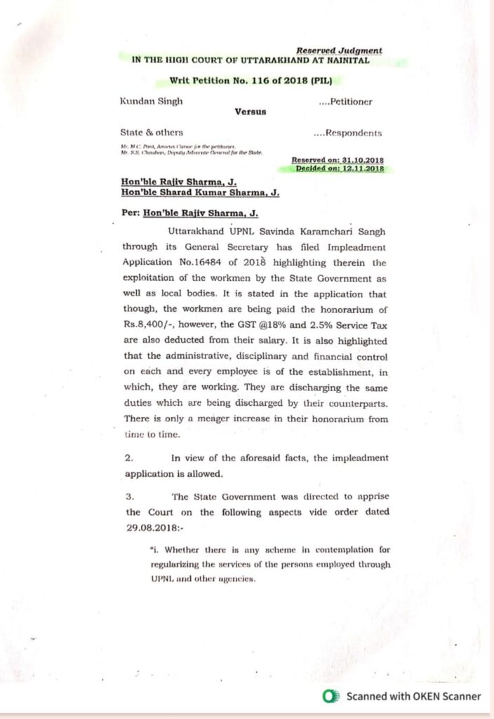 नेगी ने पत्रकारों से बातचीत में कहा कि मा. उच्च न्यायालय के 12 नवम्बर 2018 के स्पष्ट आदेश होने के बावजूद सरकार लगातार टालमटोल कर रही है। न्यायालय ने उपनल कर्मियों के नियमितीकरण व अन्य लाभ देने का निर्देश दिया था, परंतु सरकार ने फैसले को लागू करने के बजाए एसएलपी दायर कर मामला लटकाने का प्रयास किया, जिसे सुप्रीम कोर्ट ने 15 अक्टूबर 2024 को खारिज कर दिया।