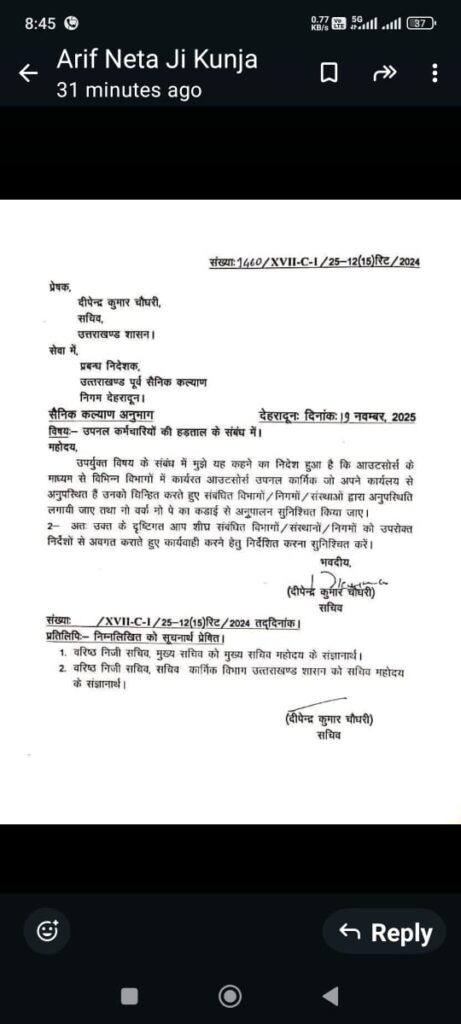 इसके बाद भी सरकार नहीं चेती। नेगी ने बताया कि सरकार द्वारा की गई रिव्यू पिटीशन भी 11 नवम्बर 2025 को खारिज हो चुकी है। इसके बावजूद सरकार न्यायालय के आदेशों का पालन करने को तैयार नहीं दिख रही, बल्कि आंदोलित उपनल कर्मियों को डराने-धमकाने में जुटी है।